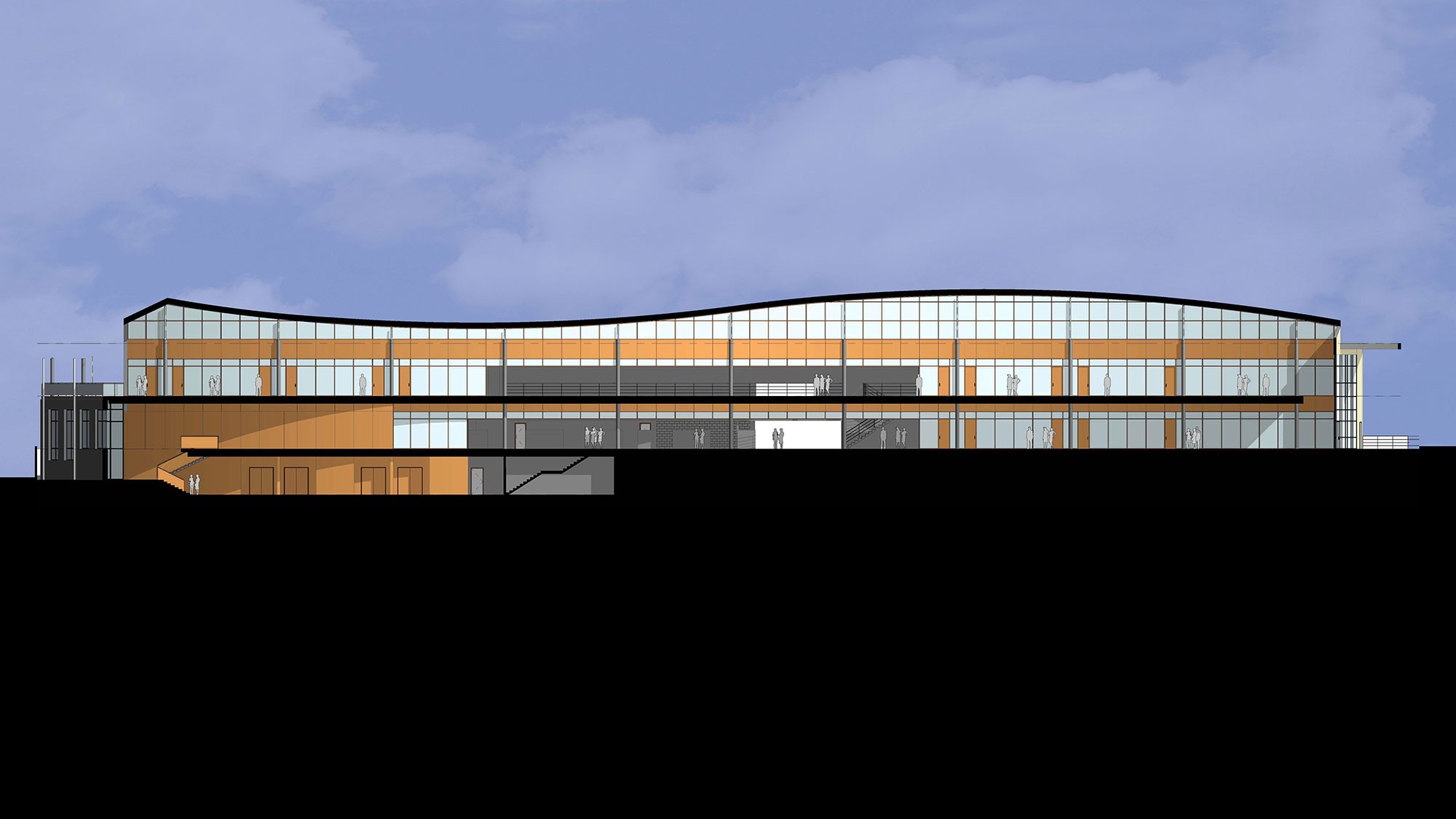 The Commons provides a new face for the Athletic Center and completes the grouping of buildings on the campus green, linking historic Grey Castle and Landman Library. It includes a café, fitness center, and meeting rooms, lounges and multipurpose spaces to accommodate groups of varying sizes. Clerestory windows for natural ventilation, solar panels on the roof, and geothermal wells under the campus green minimize reliance on outside energy sources.